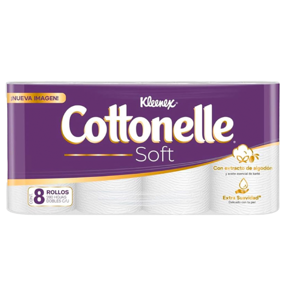 Kleenex Cottonelle Soft es la opción perfecta para consentirte a ti y a toda tu familia. Su extracto de karité te brindará una máxima suavidad, será delicado con tu piel y te hará sentir una comodidad inigualable. Tiene extracto de algodón, para una limpieza delicada. Descubre Kleenex Cottonelle Soft, suavidad que se comparte. El paquete incluye 8 rollos de papel higiénico con 280 hojas dobles.