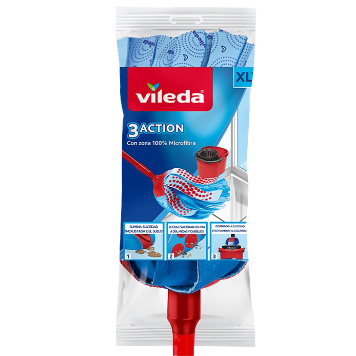 + Free ShippingEl Mop 3Action de Vileda tiene 3 increíbles zonas de limpieza para un trapeado perfecto: Zona Roja (Fibra no raya) remueve la suciedad incrustada del suelo; Zona Azul (100% Microfibra) remueve manchas grasosas y Zona con Puntos 3D que recoge suciedad del día a día, migas y cabellos.