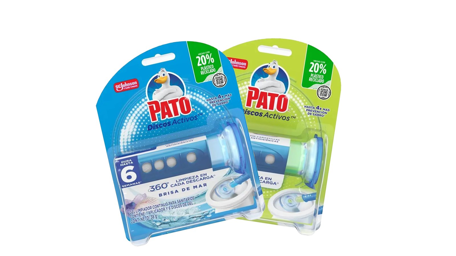 ¡Dile adiós a las canastillas Antihigiénicas, dile hola a la Frescura! Mantén tu baño limpio y fresco con Pato® Discos Activos™.